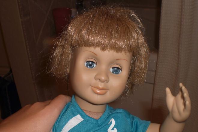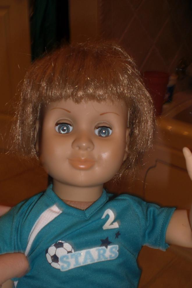 A few years ago, Savannahdoll had an unfortunate hair experience when Savannah (the girl) sprayed, what she thought was water, into her hair. Turns out it was actually cleaning spray for a dry erase board. I don’t know what chemical was in it, but it did a number on the doll’s hair. It was like a perm gone bad…very, very bad.