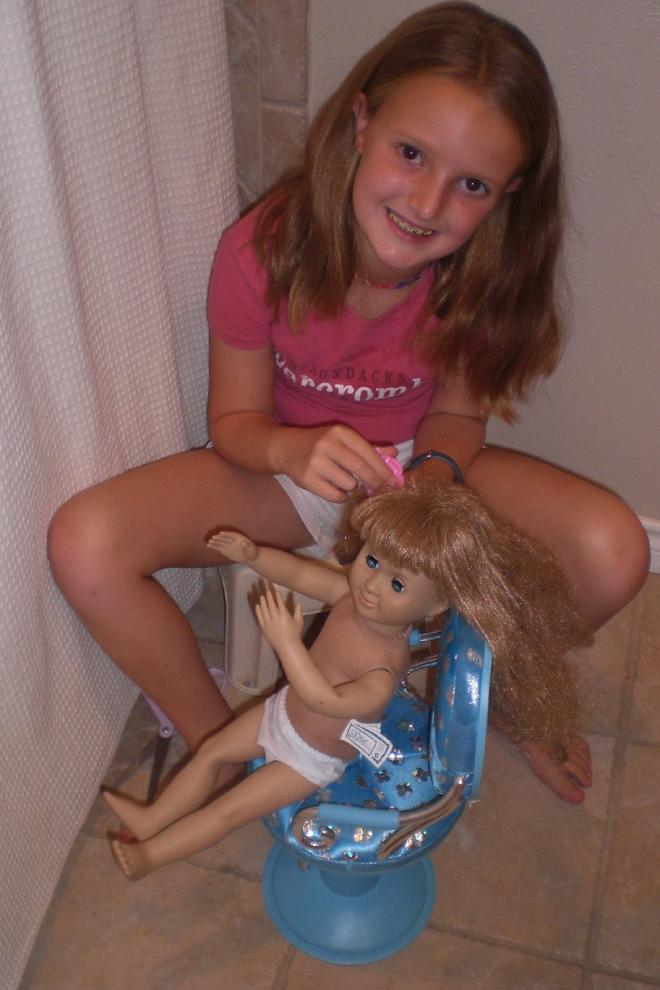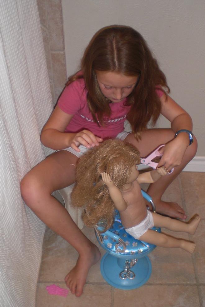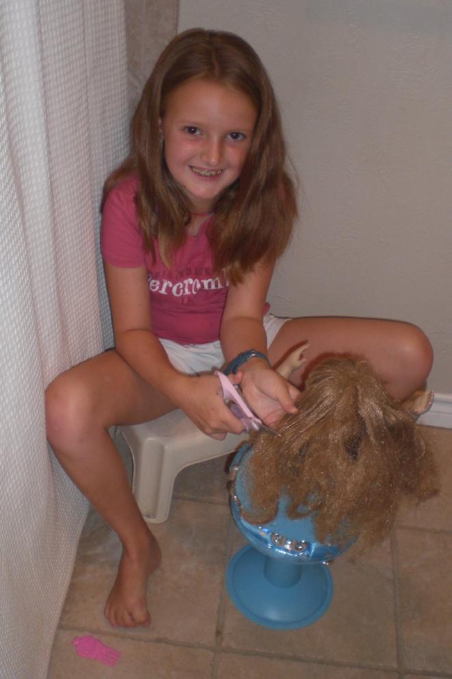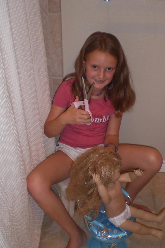Savannah (the girl) got a mischeivious look in her eyes and said…“can I cut her hair, can I? can I?!?!