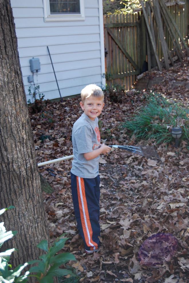 Jacob absolutely loves going to Arkansas in the fall so he can rake leaves. Give him a rake and he’s content for quite some time.