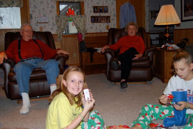 When the cousins arrived we had Christmas dinner. Bill’s mom bought some ham and sliced it into thick pieces and poured orange marmalade jelly over the top and warmed it. It was really good. She always has bar-b-que meatballs for the kids which they love … not very traditional maybe but loved by all the kids (and an adult or seven).