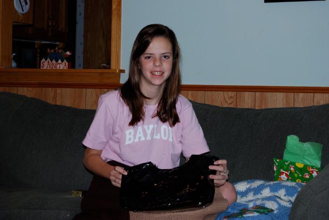 Next we opened the gifts. Instead of stockings, this year Grandma and Grandpa put gift sacks on the tree with gift cards inside for Wendy’s.