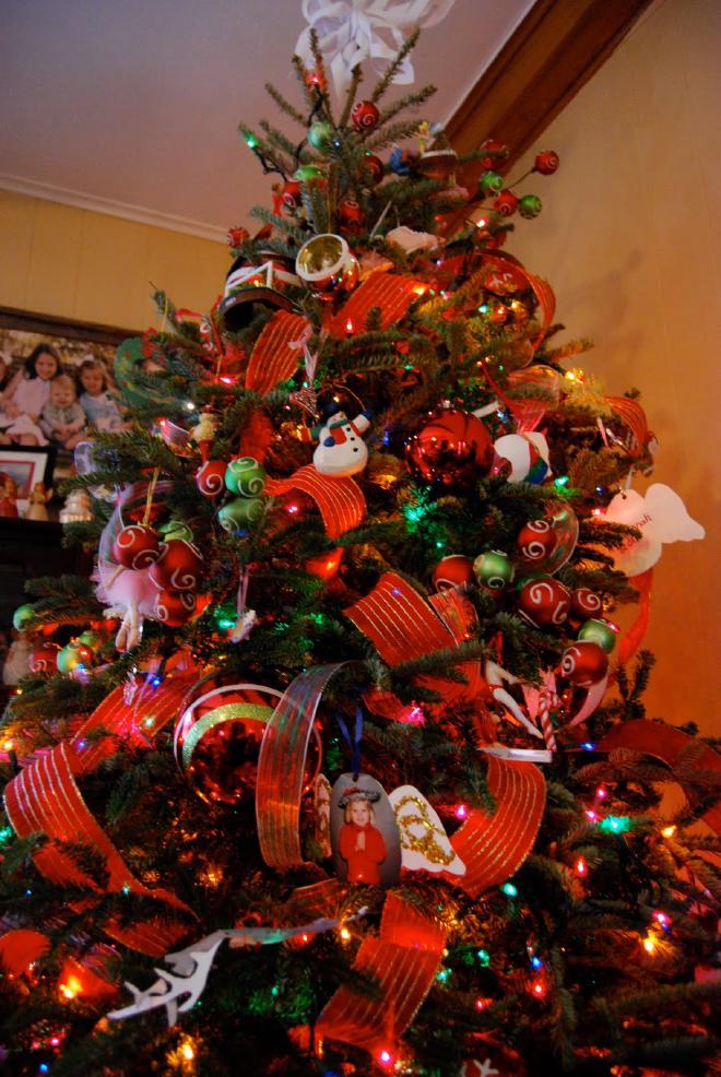 And just to keep in the Christmas theme, I want to share some pictures of our tree. Mostly so I won’t ever forget it because it was my most favorite tree ever. The kids and I bought it at Lowe’s in all of about 3 minutes … it was freezing and we asked if we could buy one of the display trees. My sister (the decorator) added ribbon to the tree when she was in town. She will have to come back if I am ever to have a tree that pretty again. I couldn’t even begin to do what she does. I bought different size ball ornaments in a set at Costco and then ordered “picks” for the tree from Mrs. Cayce’s Christmas Store. I really thought it was perfect except that it needed a star. Next thing I knew, Savannah made a three dimensional star that she put on top of the tree and I LOVED it.