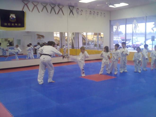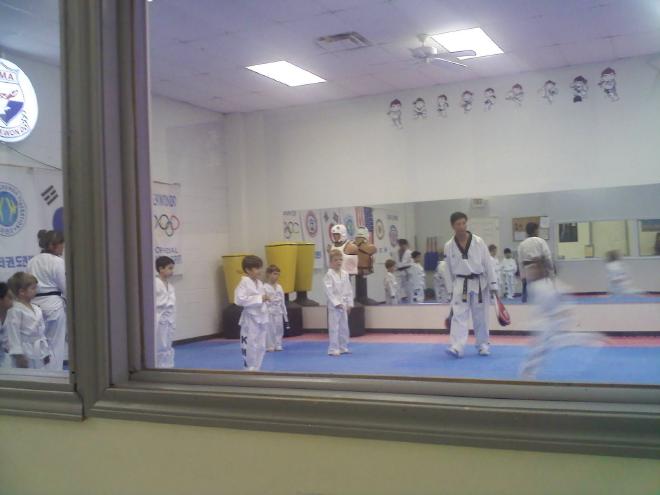 After reminding him that this is where you learn how to break a board with your foot, he went on inside. Judging from the way he kicked, he wants to break a board pretty soon.