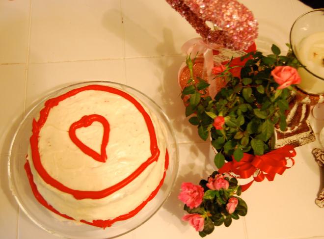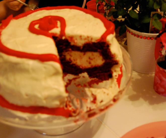 Not just any cake, but a cake with a heart in the middle.