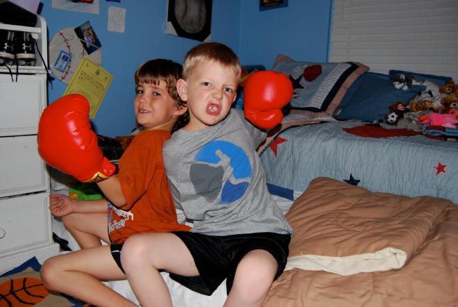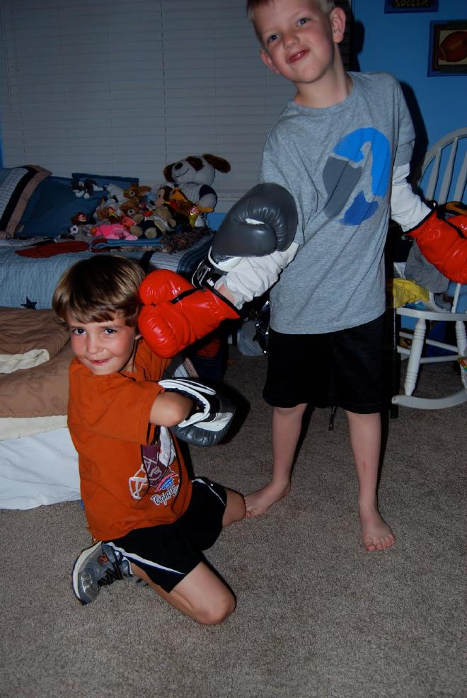 And I realized, once again, that I am still new to the “boy mom” gig. (I have started trying to say “uniforms” instead of “outfits” now … just so you know). Boy sleepovers are very different than the ones the girls have had … for example, Connor hadn’t been here five minutes before he and Jacob were boxing.