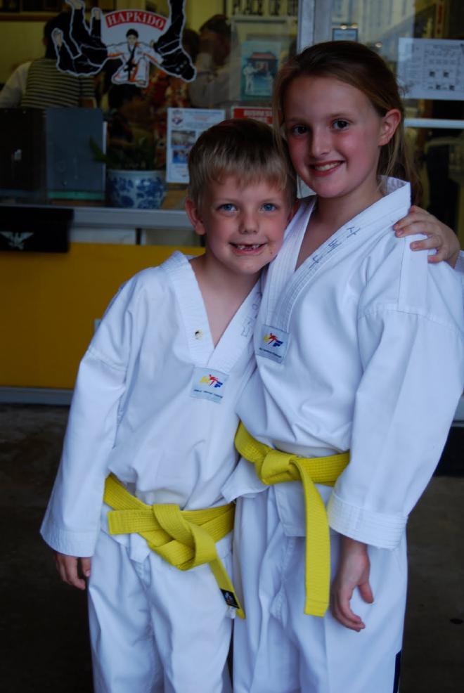 But I didn’t imagine my kids would be doing real kicks while wearing taekwondo uniforms.