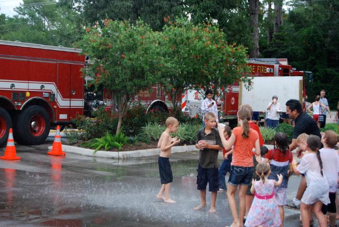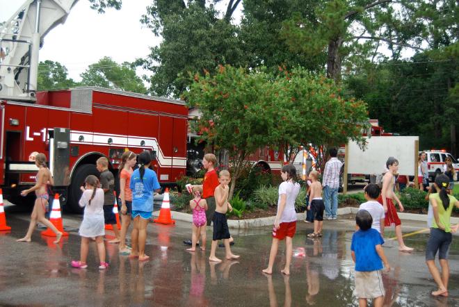 But since we got home …. a mere 48 hours ago, we’ve had a national holiday to celebrate. We literally drove straight from camp to a neighborhood 4th of July festival that we’ve missed going to the last couple of years since we were at camp. I really wanted to go because they shoot water out of a fire truck and when you have a six year old little boy, they think stuff like that is really cool.