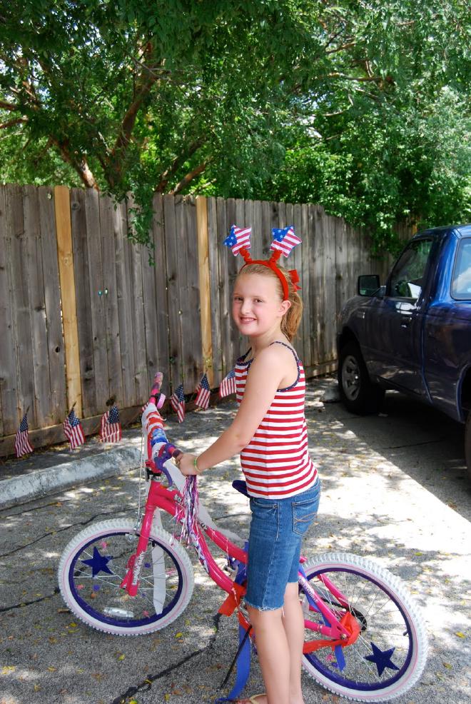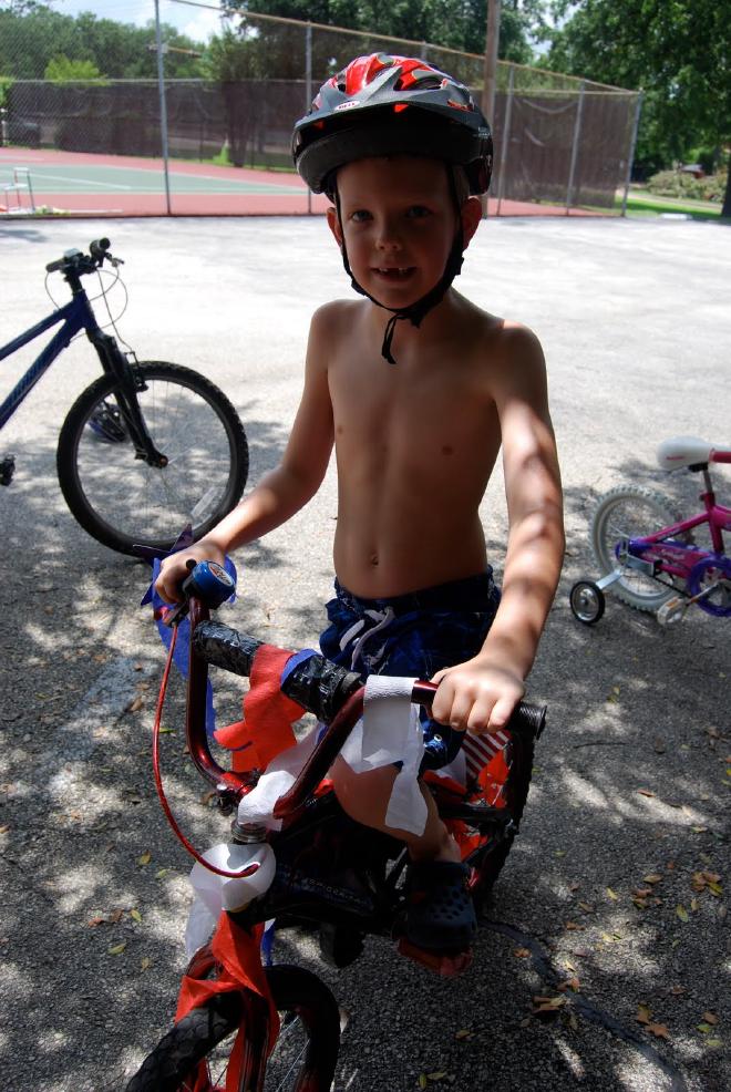 At 2:00 our neighborhood had their annual bike parade where we follow a fire truck. Only the fire truck didn’t show … but we paraded anyway. Jacob and Savannah decorated their bikes themselves but when we got to the parade Jacob’s tire was flat. REALLY FLAT. Like it had a giant slit in it. Thankfully there was a scooter ready and waiting in the garage!