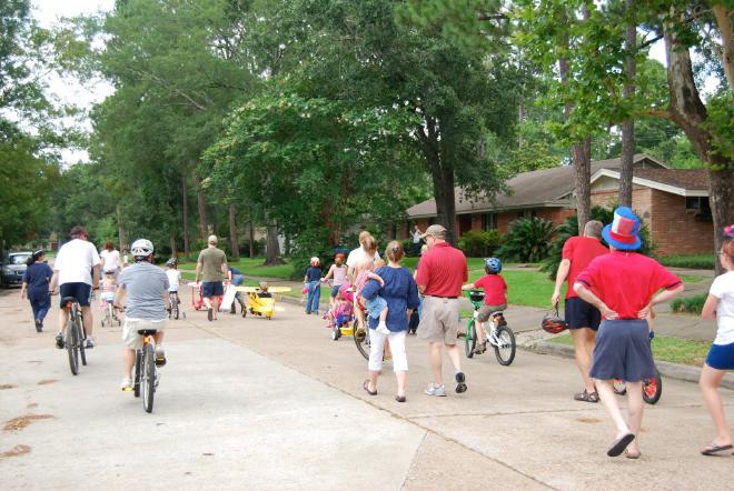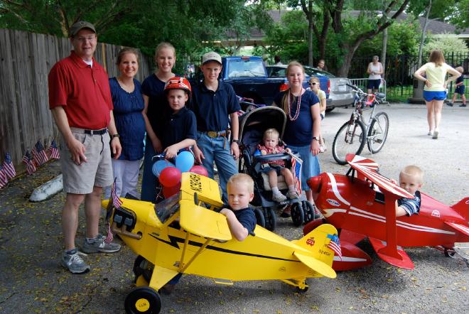 Our neighbors, the Jamesons, have seven kids and the eighth is on the way … soon. And their 13 year old son MADE these airplanes out of a kit for his younger siblings to “ride” in the parade. I awarded them “best of show”.