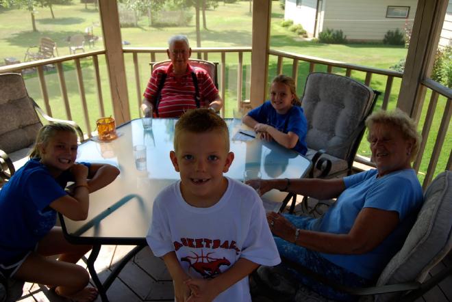 Sitting in the grandparents gazebo (where many a game of Yahtzee has been played):