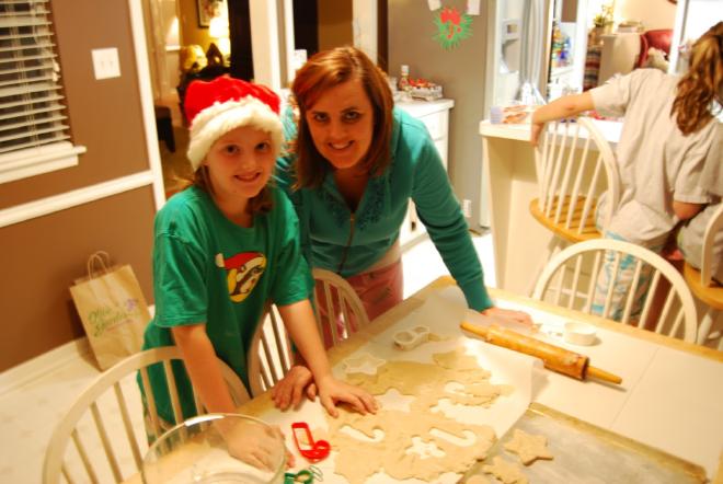 After church we went to Olive Garden for dinner and it poured down rain. When we got home Savannah wanted to make cookies for Santa. She ended up cutting out each individual letter by hand.