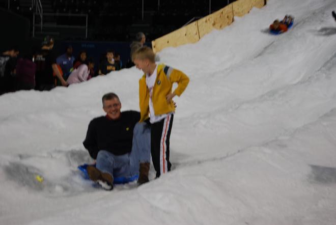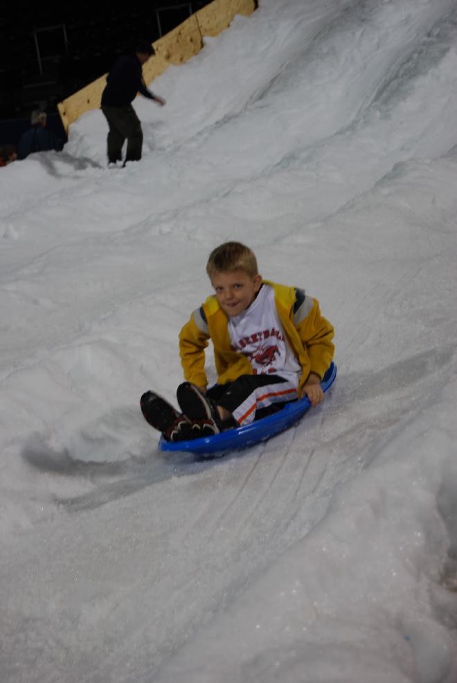 The next night a snow hill was added there so we went back with our friends the Browns and Lackeys. Snow Hills in Houston!!