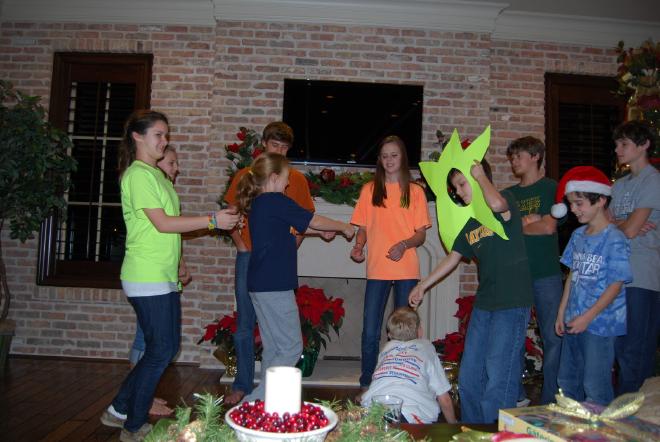 After the snow, we went back to the Browns house for our annual Christmas pageant. It almost didn’t happen as the kids are getting older but Jacob pleaded his case before Tommy Brown that he deserved to be Jesus in this years rendition … as so it was accomplished in those days that Mary and Joseph went to Bethlehem and Jesus came along too (it was a bit of a different version) …