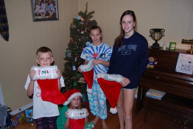 Oh, and there were stockings. The funny thing about the stockings were that at my moms house they have similar stockings only with their names on them. Bill’s mom has stockings with their names on them too. When Jacob saw that our stockings had no names on them, he was heartbroken. So, we made names for them. I loved them!