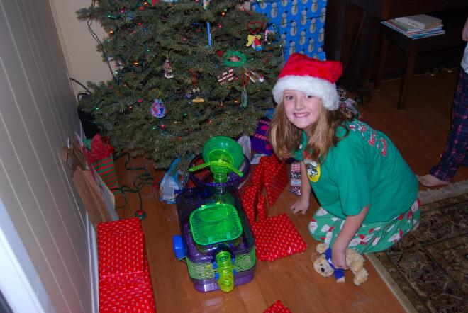 Christmas morning we slept until 10:00 (I LOVE MY KIDS!!!) and awoke to find Santa had answered Savannah’s request and brought a hamster. The Baergs, once again, have a live animal to take care of.