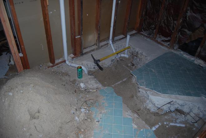 There is no floor in the den and, remember that little wet bar? … it’s part of the master bathroom now.