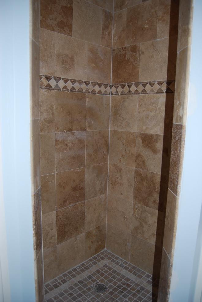 Both bathrooms have the tile finished and cabinets built … we just need sinks and counters and light fixtures and mirrors!