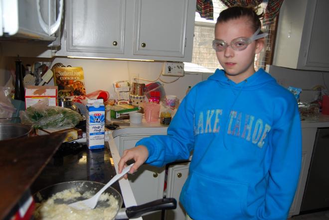 SHE WAS WEARING HER SWIM GOGGLES to keep the onion from burning her eyes. I laughed until I cried and this is the 535th reason why cooking with Brittany is pure awesomeness. One thing I know for sure …. you won’t see this on the Rachel Ray show!