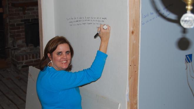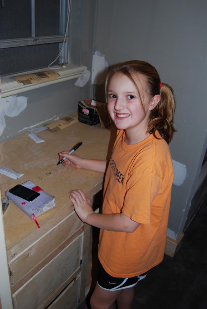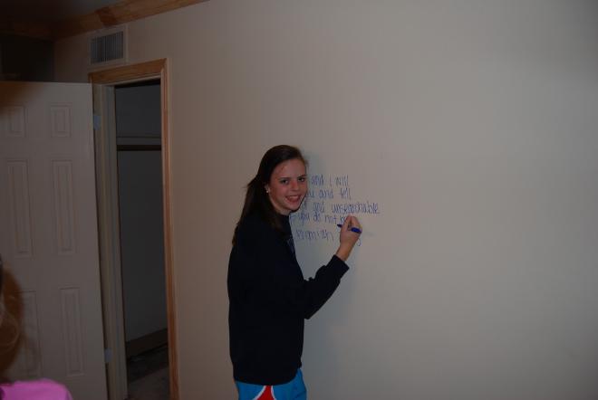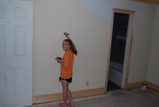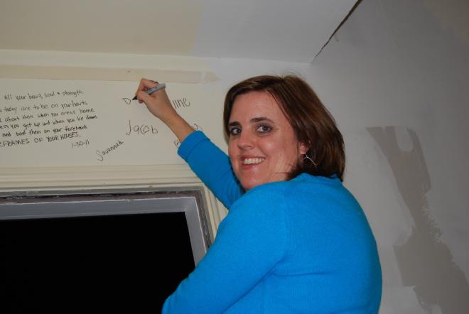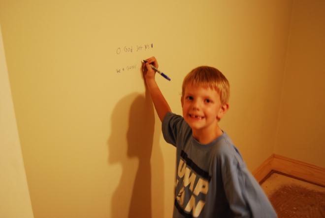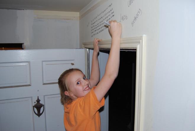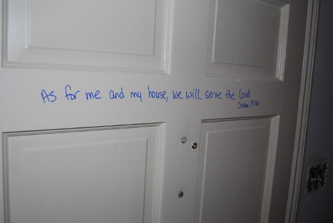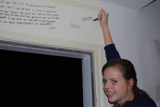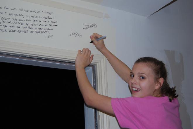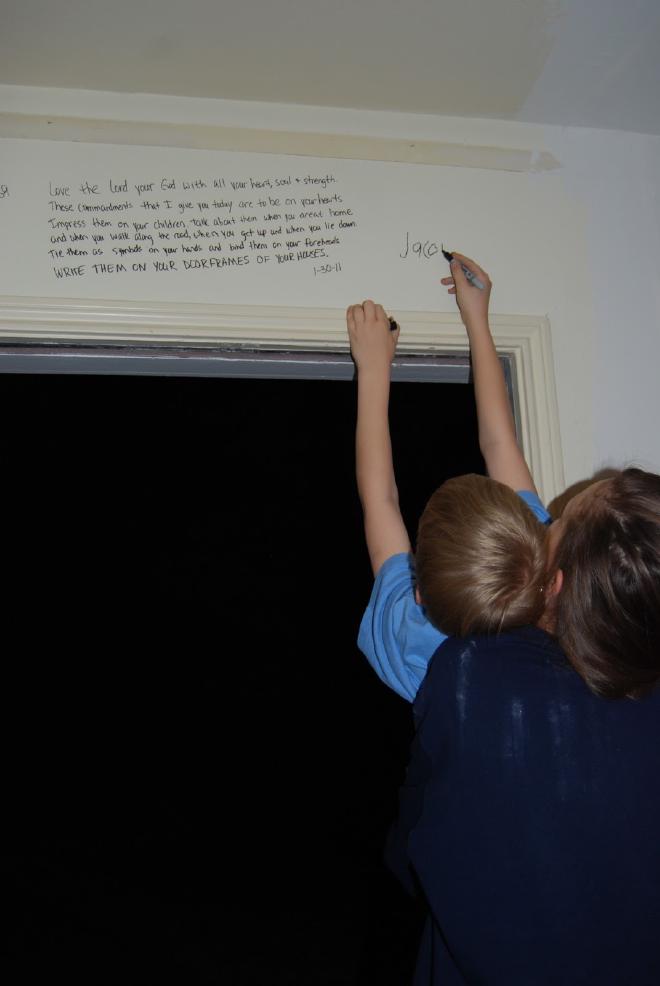 Last weekend we went and did something we have been anticipating for a long time. We “versed” our new house. We asked the children to each pick a verse that was meaningful to them to write on the door frames of their room. We all got in on the action: