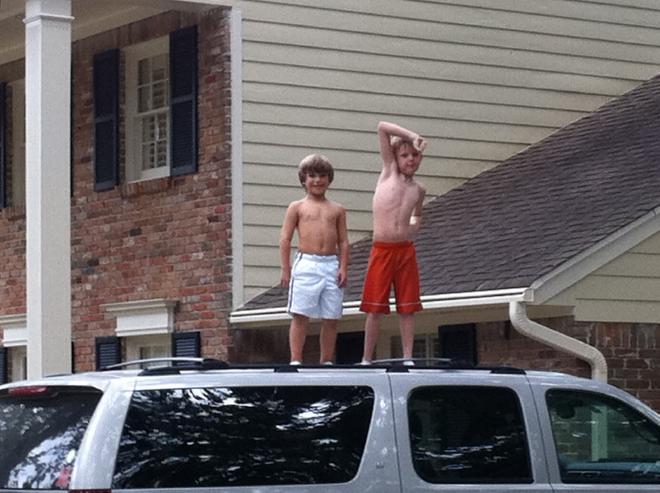 I love living on our new street. Last weekend we all gathered out in our yard to watch the high school seniors get their pictures taken before prom. When we turned around we saw Jacob and his buddy Jack ON TOP OF our car. And we figured we’d laugh about it (or maybe cry!) eleven years from now when they are being photographed for their own prom.