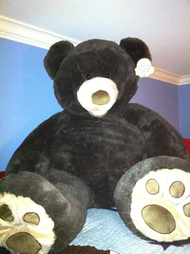 Tonight is “Big Bear’s” first night on the job. And with a light on in the closet and a flashlight pointed towards the ceiling Big Bear has worked his magic and Jacob is asleep.