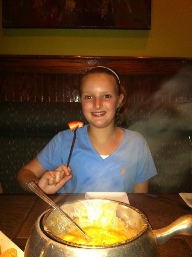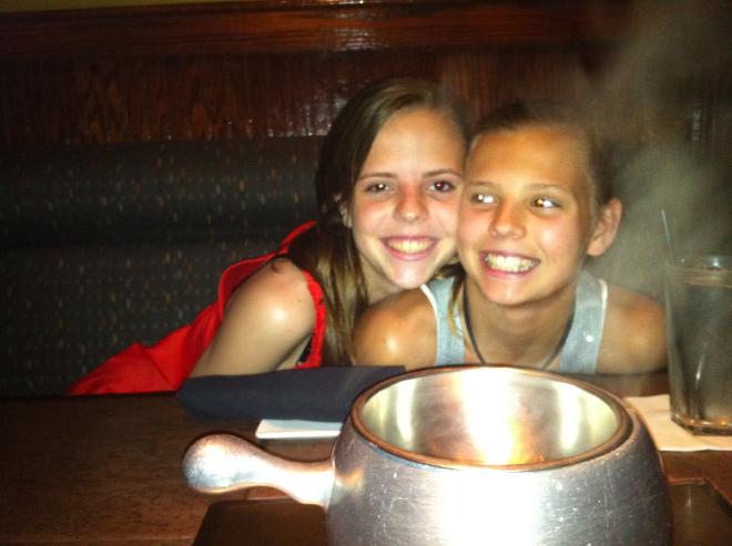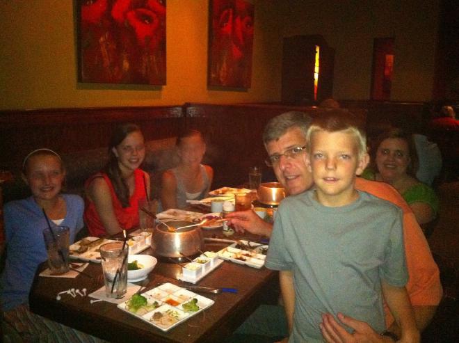 So, Saturday night we went off to the celebration. Caroline questioned why we would go to a RESTAURANT to cook the food ourselves over and over but by the time we started eating, I think she was a convert. Having four kids huddled around two very hot pots filled with oil has the potential for trouble, but we did just fine. Enjoyed it!