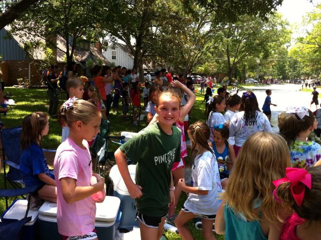 Summer started with the traditional “Boogie Down Brittmore”. That is where we all stand on the side of Brittmore Drive and throw balloons at the graduating 5th graders from our school. And while everyone else was throwing balloons I tried to determine how it could be possible that next year my sweet Savvy Sue (Savannah) is going to be among the graduates. Someone tell me how this happened?!? It almost feels like there are entire years I don’t remember. But the kids enjoyed it: