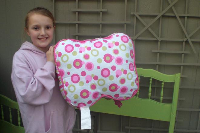 We found the perfect bedding (TJ Maxx/Marshalls) to match the pink of her room with the green of the bed … and we LOVE bubble/dot fabric.