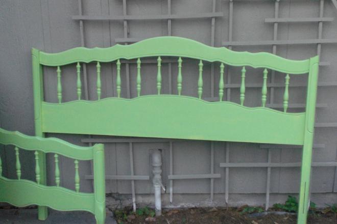 In the meantime, Grammy and Grandy brought the bed I had when I was a girl from Little Rock. My mom had an “inspiration page” from a magazine and we followed their lead and painted the bed green. I use the term “we” very loosely. My dad did it. :)