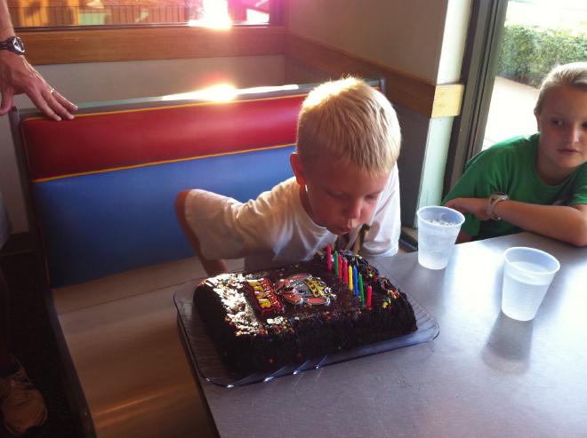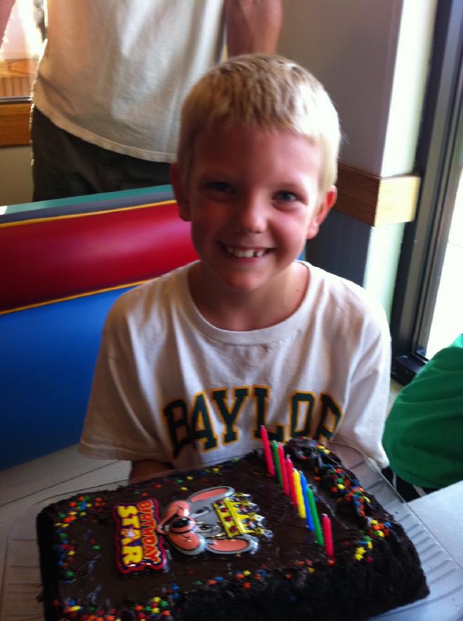 Jacob was turning 8 and I was turning 44 so we held up the same number of fingers. :)