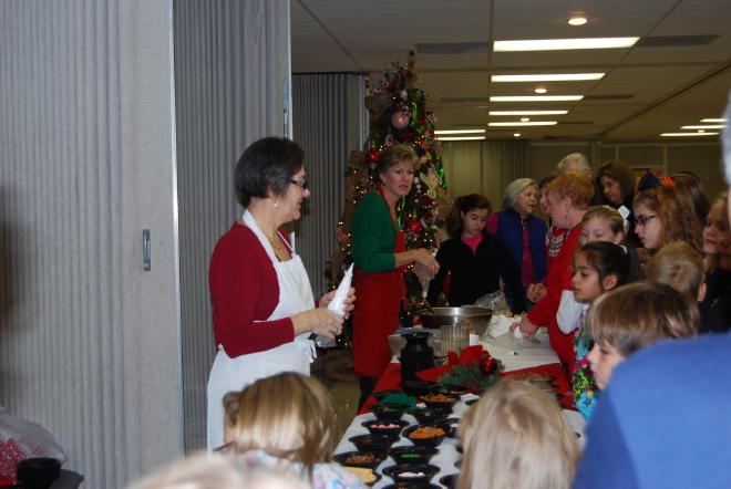 The party was really cute. The kids got gingerbread cookies to take home, we got a picture in front of the tree in a cute mat as a favor and they had cookies and punch and LOTS of candy to decorate.