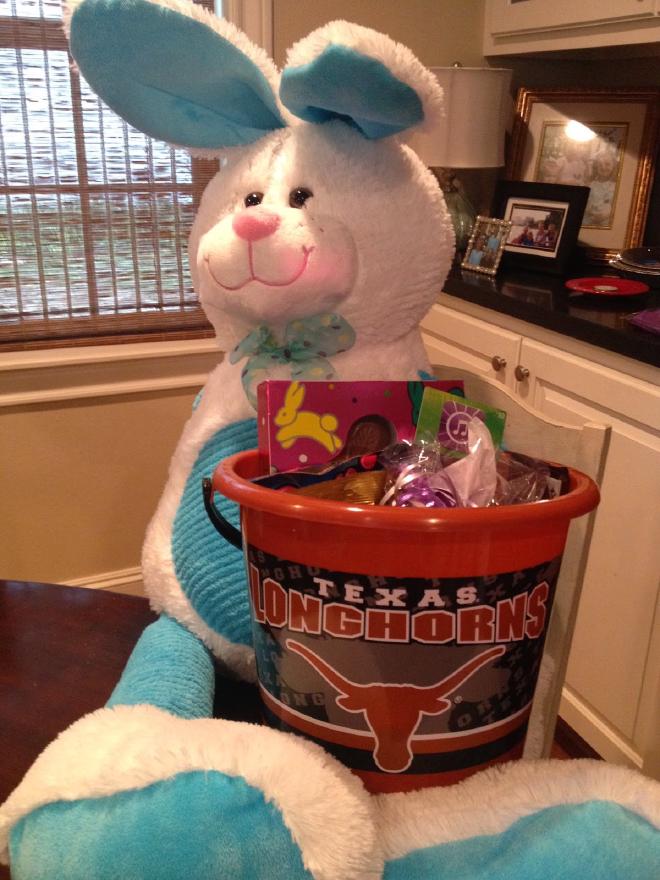 and some Easter basket fun (look what a good sport the Easter bunny is bringing Caroline a University of Texas basket!)