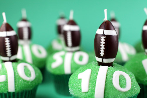 There you go… cute little football field cupcakes.