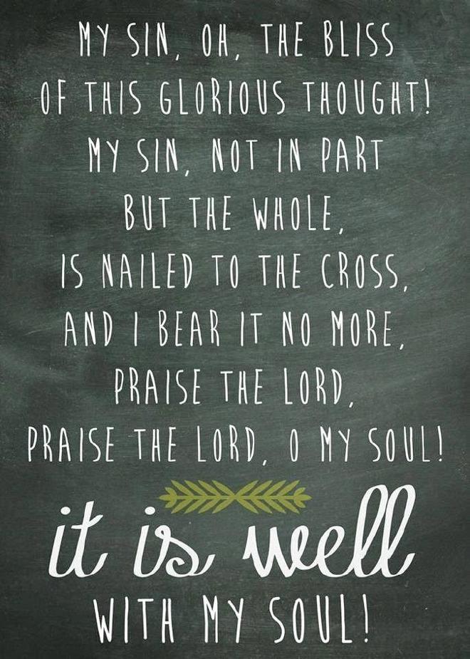 The story, the tweets, the facebook statuses continue even unto this day. We must tell the story. The story that our sins “not in part but in whole … were nailed to the cross and we bear them no more” and “it is well, it is well with our souls”.